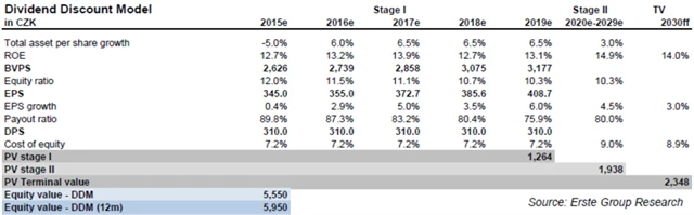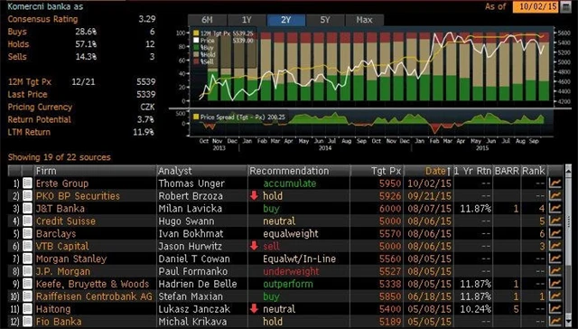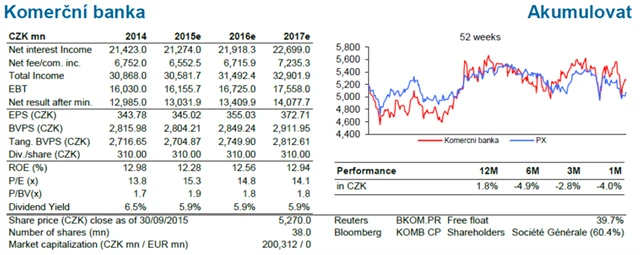 "Komerční banka je nejdražší akcií v rámci našeho sektorového reportu v regionu střední a východní Evropy. Obchoduje se téměř na dvojnásobku své očekávané účetní hodnoty pro rok 2015, což je však odůvodněno vyšším ROE," píše Unger. "Neočekáváme tak rychlý růst finanční výkonnosti jako u ostatních bank, avšak věříme, že se ziskovost zvedne se zlepšujícími se makroekonomickými podmínkami v ČR."