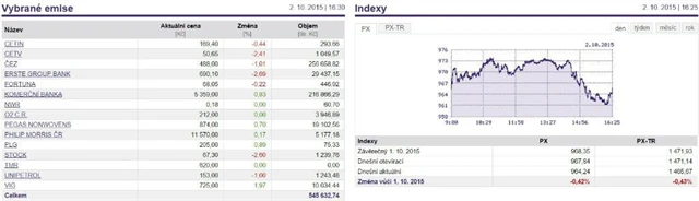 Index PX v pátek odepsal 0,42 % na 964,24 bodu.