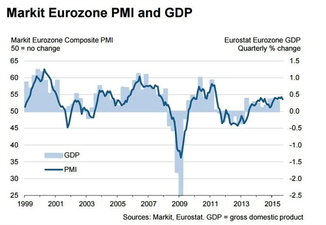 Ekonomická aktivita roste v celé "velké čtyřce" států i v Irsku. Francie v září zaznamenala tříměsíční maximum, když kompozitní index vzrostl na 51,9 bodu, zatímco Německo vykázalo dvouměsíční minimum 54,1 bodu, Itálie 6měsíční minimum 53,4 bodu a Španělsko 9měsíční minimum 54,6 bodu. Všechny země se však drží výrazně nad padesátibodovou hranicí dělící kontrakci od expanze. Nejlépe je na tom Irsko, které stále expanduje nejrychleji, kompozitní index se nachází na 59,5 bodu, přestože to konkrétně pro Irsko znamená nejpomalejší tempo expanze za posledních 16 měsíců.