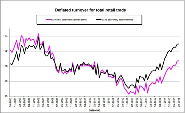 V celé Evropské unii byl objem maloobchodu v srpnu oproti červenci rovněž stabilní po 0,4% růstu v červenci. Meziročně se zvýšil o 2,6 %.
