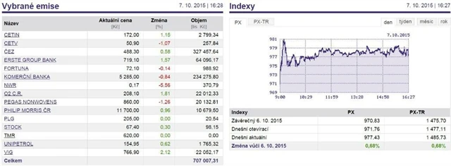 Index PX ve středu připsal 0,68 % na 977,43 bodu.
