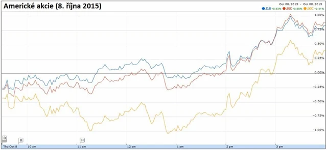 Indexy Dow a S&P 500 se ve čtvrtek dopoledne pohybovaly kolem nuly a Nasdaq Composite odepisoval až procento. Investoři čekali, jak vyzní zápis ze zářijového zasedání Fedu. Hodinu před zveřejněním zápisu se všechny tři hlavní indexy odrazily a zamířily prudce vzhůru, z dokumentu posléze vyplynulo, že Fed znepokojuje zpomalování růstu globální ekonomiky, avšak jeho členové nepředpokládají, že by tento vývoj výrazněji ovlivnil hospodářské vyhlídky samotných Spojených států.