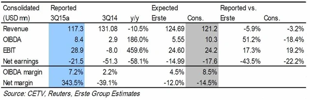 Mediální CME ve třetím čtvrtletí hospodařila s provozním ziskem 28,85 milionu USD, výsledky ale byly pod odhady trhu