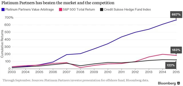 Mezi prvními investory byli Murray Huberfield a David Bodner, kteří sice vydělali mnoho peněz na internetové bublině, ale také byli obviněni z podvádění při získávání makléřské licence a museli zaplatit pokutu 4,7 milionu dolarů za nelegální obchodování s akciemi. Huberfield spravoval fond, který ze 119 měsíců skončil v zisku ve 118 případech, dosáhl průměrného ročního výnosu 13,5 % a byl nakonec pohlcen právě Platinum Partners (obě firmy sídlily ve stejné budově).