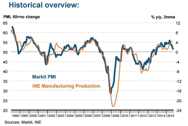 Zpracovatelský sektor ve Španělsku v říjnu opět zpomalil tempo expanze. Index nákupních manažerů klesl na 51,3 bodu ze zářijových 51,7 bodu, čekal se růst na 52 bodů.