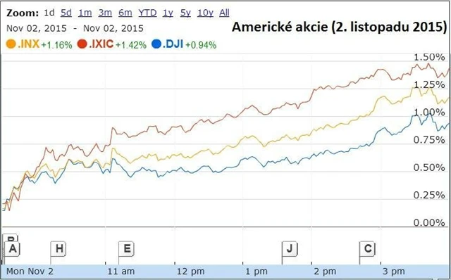 Americké akcie zahájily listopad úspěšně, index Dow zvrátil letošní ztrátu a dostal se do mírného plusu