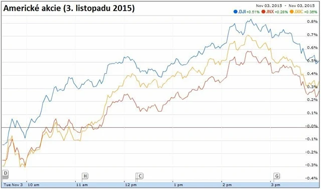 Dow zpevnil o 0,5 % na 17 918,15 bodu, S&P 500 připsal 0,27 % na 2 109,79 bodu a Nasdaq Composite uzavřel se ziskem 0,35 % na 5 145,13 bodu. Index volatility VIX vzrostl o 2,76 % na 14,54 bodu a výnos 10letých vládních dluhopisů USA se zvýšil o čtyři bazické body na 2,212 %.