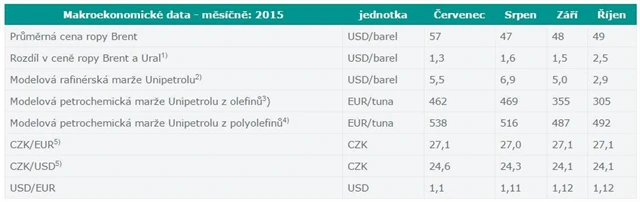 "Podstatný pokles rafinačních marží se z našeho pohledu čekal a byl také avizován u příležitosti zveřejnění výsledků Unipetrolu za letošní třetí čtvrtletí," dodává Bohumil Trampota, analytik J&T Banky.