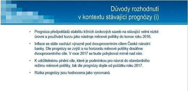 14.18 Singer: Nová prognóza předpokládá stabilitu tržních sazeb na velmi nízké úrovni a používání kurzu jako nástroje měnové politiky do konce roku 2016.