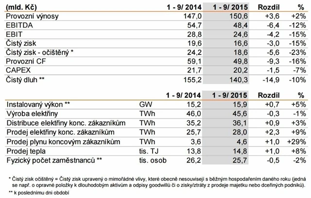 Navzdory poklesu realizačních cen vyrobené elektřiny i výpadkům výroby v jaderných elektrárnách společnosti meziročně vzrostly tržby za první tři čtvrtletí na 150,6 miliardy Kč, a to hlavně díky růstu objemu prodeje elektřiny (+9 %), tepla (+8 %) a zemního plynu (+29 %). ČEZ je nadále úspěšný v získávání nových zákazníků odebírajících plyn, navíc se mu podařilo téměř zastavit odchod zákazníků odebírajících elektřinu.
