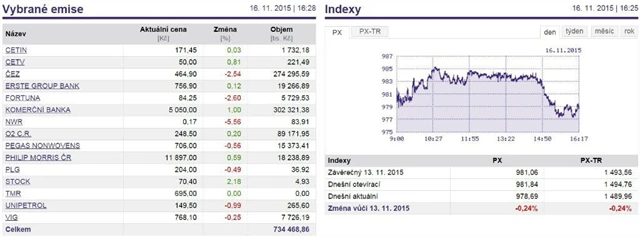 Index PX v pondělí odepsal 0,24 % na 978,69 bodu.