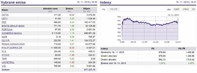 Index PX vzrostl o 1,37 % na 992,13 bodu.