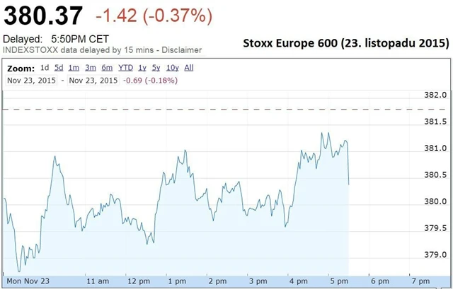 Britský FTSE 100 ztratil 0,46 %, francouzský CAC 40 0,44 % a německý DAX 0,25 %. Regionální STOXX Europe 600 oslabil o 0,37 % - část ztrát umazal poté, co předběžná zpráva agentury Markit ukázala, že ekonomická aktivita v eurozóně se tento měsíc vyšplhala na 4,5leté maximum.