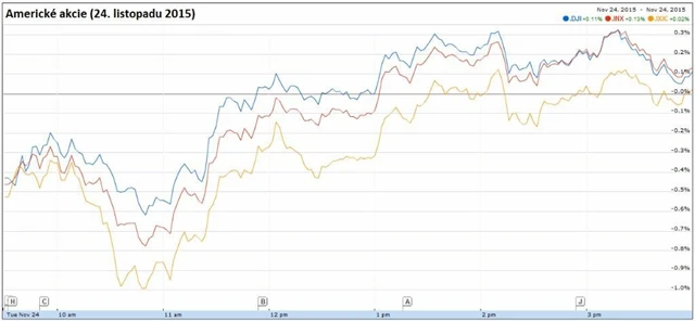 Americké akcie v úvodu úterního obchodování navzdory příznivým údajům z americké ekonomiky mírně klesaly. Wall Street ovlivnila zpráva o sestřelení ruského bombardéru Tureckem, po níž se investoři začali přesouvat od akcií k bezpečnějším aktivům. Posléze se ale nálada na trhu zlepšila a všechny tři hlavní indexy nakonec uzavřely mírně v plusu.