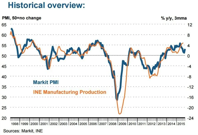 Španělsko: Index nákupních manažerů ve zpracovatelském sektoru v listopadu vzrostl na 53,1 bodu (odhad: 51,7 bodu, říjen: 51,3 bodu)
