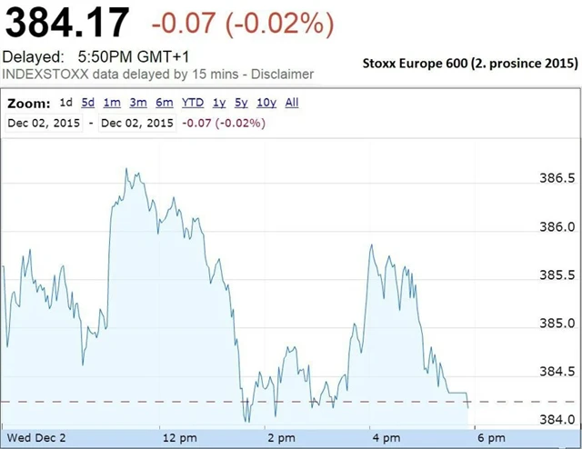 Britský FTSE 100 připsal 0,4 %, francouzský CAC 40 naopak 0,18 % ztratil a německý DAX odepsal 0,63 %. Regionální STOXX Europe 600 zakončil jen lehce pod nulou se ztrátou 0,02 % poté, co Eurostat zveřejnil předběžné údaje o listopadové inflaci, která stagnovala na říjnovém tempu 0,1 % meziročně. Jádrová inflace, kterou trhy i ECB navíc sledují více, protože je očištěná o volatilní ceny energií a potravin, zpomalila na 0,9 % meziročně.