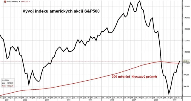 Index amerických akcií S&P 500 ve středu zakončil na hodnotě 1028 bodů, což je o 1,2 procenta výše než 1015. Právě tato úroveň je průměrným, závěrečným kurzem dvacátého šestého obchodního dne v posledních 200 měsících.