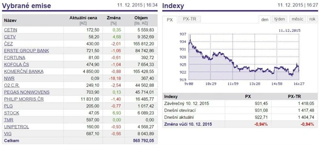Týden na BCPP: Index PX -2,9 %, ČEZ -6,3 %, Stock +15,5 %