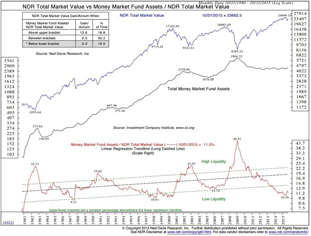 Negativní signály bohužel vysílá také likvidita. Podíl hodnoty finančních aktiv v držení investičních fondů na celkové hodnotě amerického akciového trhu již několik let klesá a aktuálně se nachází v blízkosti 15letých minim. Fondy tak podle všeho už nemají sílu ani chuť akcie dále nakupovat.