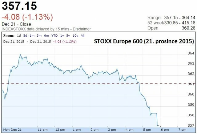 Britský FTSE 100 klesl o 0,29 %, francouzský CAC 40 odepsal 1,3 % a německý DAX spadl o 1,04 %. Regionální STOXX Europe 600 odepsal 1,13 % na 357,15 bodu.