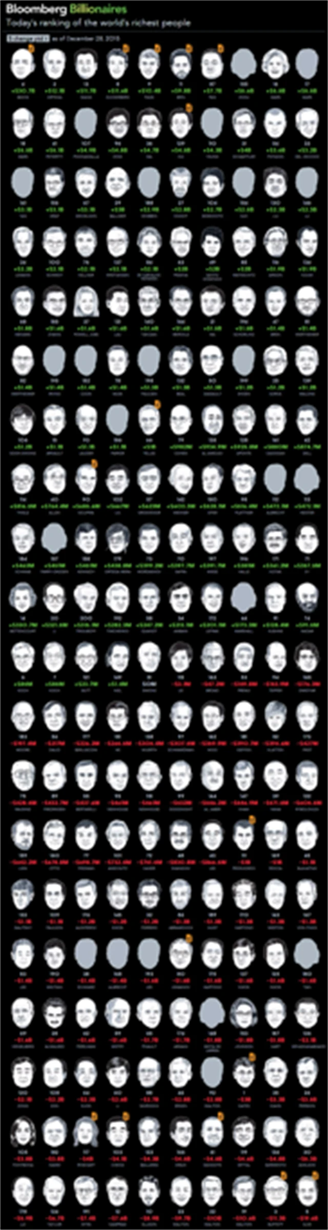 Spoluzakladatel softwarové společnosti Microsoft Bill Gates, který je nejbohatším člověkem světa, přišel za celý rok o tři miliardy dolarů. Americký investor Warren Buffett, třetí nejbohatší člověk planety, ztratil 11,3 miliardy dolarů, když jeho investiční společnost Berkshire Hathaway dosáhla letos prvního záporného ročního výsledku od roku 2011.