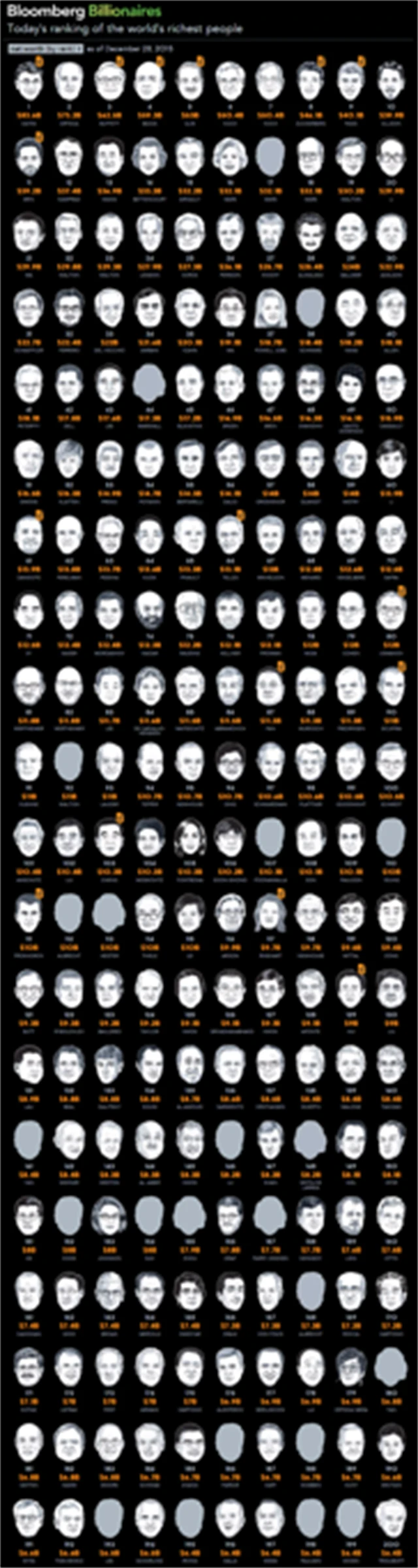 Celkově ovládá nejbohatších 400 lidí světa podle indexu dohromady 3,9 bilionu USD. Je to více než hrubý domácí produkt každého státu světa kromě tří největších světových ekonomik, tedy Spojených států, Číny a Japonska.