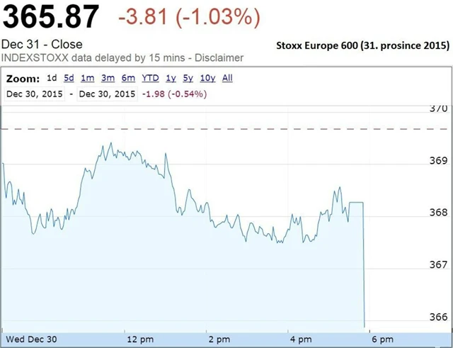 Evropské akcie na silvestra mírně oslabily, za celý rok však podle indexu STOXX Europe 600 zpevnily o 7 %
