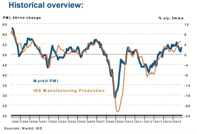 Index nákupních manažerů ve zpracovatelském sektoru ve Španělsku v prosinci mírně klesl na 53 bodů z 53,1 bodu (odhad: 53,6 bodu) Redakce IW4. 1. 2016 | 9:15Indexy nákupních manažerů (PMI)Zdroj: BloombergIndexy nákupních manažerů (PMI)ŠpanělskoRedakce IW Další články autoraTOP 10 článků týdne: Investiční tipy, Moskva vůči Pekingu a AI pokaždé jinakOčekávané výsledky světových firem v týdnu od 10. listopadu: Walt Disney, Cisco Systems, RWE, ČEZJak vydělat na jednorožcích dříve, než se na ně vrhnou investoři na burze DoporučujemeRychlé peníze ve velkém opustily zlato a stříbro. Trh se připravuje na další růstZlatoAI euforie žene index S&P 500 do extrémů. Bank of America radí, kam teď "schovat" penízeDiverzifikace investicPříští vláda shrábne makroekonomický jackpotČeská ekonomika Aktualitydnes | 14:25Šéf Walmartu Doug McMillon odejde v lednu do důchodudnes | 14:09Spotové bitcoinové ETF zaznamenaly odliv 870 milionů dolarů, druhý největší v historiidnes | 13:45Největší americký stavitel domů D.R. Horton nasazuje AI, aby urychlil výstavbudnes | 13:36Modiho drtivé vítězství v Biháru může odblokovat obchodní dohodu s USAdnes | 13:25Futures na americké akcie: Dow -0,60 %, S&P 500 -0,90 %, Nasdaq 100 -1,37 %dnes | 12:55eBay zažívá comeback díky umělé inteligencidnes | 12:26AI společnost tvrdí, že čínští špioni využili její technologii k automatizaci kybernetických útokůdnes | 11:58Trump pohrozil BBC žalobou ve výši 1 miliardy dolarůdnes | 11:44Přebytek obchodní bilance eurozóny se v září zvýšildnes | 11:23Eurozóna potvrdila růst HDP ve třetím čtvrtletídnes | 10:54Zahraniční pobočka společnosti Alibaba plánuje předplatné AI a platby podobné stablecoinůmdnes | 10:45Akcionáři Monety schválili mimořádnou dividendu 4 Kč na akciiZobrazit všechny aktuality