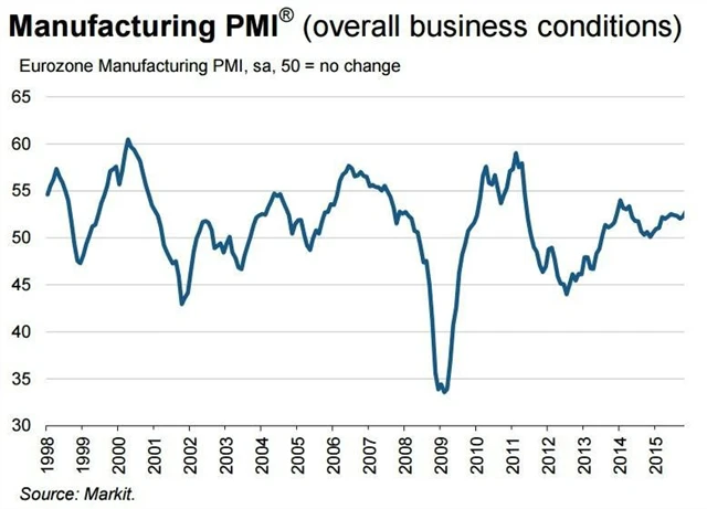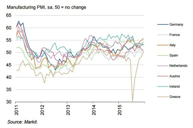 Podle ekonoma společnosti Markit Roba Dobsona jsou tyto údaje sice převážně nadějné, celkový obrázek ovšem vypovídá o slušném, byť nijak ohromujícím růstu. Zpracovatelský sektor eurozóny se podle něj pohybuje stále zhruba deset procent pod vrcholem z doby před finanční krizí.
