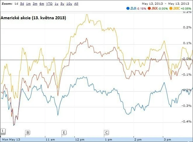 Americké indexy zahájily pondělní obchodování v mínusu a v průběhu dne si vedly smíšeně. I přes překvapivě dobré dubnové maloobchodní tržby se další akciová rally nekonala. Maloobchodní tržby v dubnu nečekaně vzrostly o 0,1 %, ačkoli se čekal pokles o 0,3 %. Březnové údaje však byly revidovány na -0,5 % z -0,4 %.