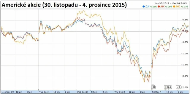 - Americká ekonomika v listopadu vytvořila více pracovních míst, než se čekalo. Odhady hovořily o 200 tisících míst, vzniklo jich však 211 tisíc. Míra nezaměstnanosti v listopadu zůstala na 5 %, jak se čekalo. Data zvyšují pravděpodobnost, že Fed za dva týdny poprvé za více než devět let posune úrokové sazby výše.