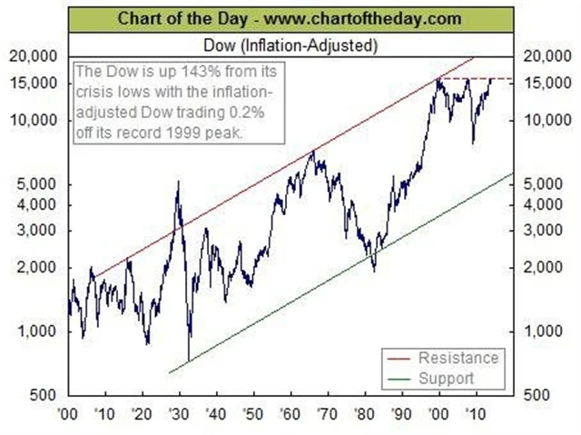 Index Dow očištěný o inflaci se již potřetí za poslední dekády snaží dostat nad 16 tisíc bodů. Vývoj v posledních dnech spíše naznačuje, že se potřetí odrazí níže.