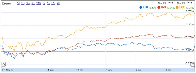 Všechny tři hlavní americké akciové indexy v pátek uzavřely na nových maximech. Smíšený dojem ze zprávy o říjnové situaci na trhu práce USA nakonec zastínily akcie Applu, které podporovala jak silná kvartální čísla, tak obrovský zájem o nový telefon iPhone X.