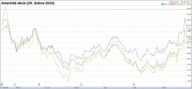 Akcie ve Spojených státech v pátek druhý den za sebou oslabily. Mohly za to firemní výsledky a zpráva o osobních příjmech a výdajích amerických spotřebitelů, která naznačila pokles tempa inflace. V červených číslech skončily všechny tři hlavní akciové benchmarky i za celý týden, duben však byl pro dva ze tří hlavních indexů ziskový.