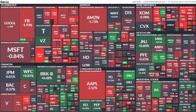 Z jedenácti hlavních sektorů, které jsou součástí indexu S&P 500, jich osm kleslo. Nejhůře si vedly technologické společnosti v čele s firmou Apple (-2,12 %) a výrobci čipů, jejichž velká část příjmů pochází s Číny.
