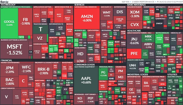 Páteční výprodeje na akciovém trhu ukončily bouřlivý týden, ve kterém centrální banka USA poprvé od roku 2008 snížila úrokové sazby a v němž se do centra zájmu opět dostaly obavy z obchodní války, když americký prezident Donald Trump oznámil plány na zavedení dalších cel od 1. září, která se dotknout čínského zboží, jehož roční hodnota dovozu do USA činí 300 miliard dolarů. Cla se tak budou vztahovat na téměř veškerý dovoz z Číny do USA.