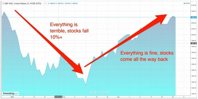 Ještě v polovině února index S&P 500 ztrácel dokonce více než 11 %, na vině byly zejména obavy investorů z dalšího vývoje čínské a světové ekonomiky a pokles cen ropy. Druhá polovina čtvrtletí ale přinesla obrat a akcie všechny předchozí ztráty smazaly. S&P 500 za celý kvartál nakonec zpevnil o 0,77 % a Dow přidal 1,5 %.