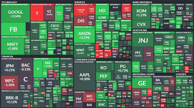 V plusu uzavřely všechny hlavní sektory s výjimkou průmyslu. Nejlepší výkon podaly technologický sektor, odvětví cyklického spotřebního zboží a energetický sektor.