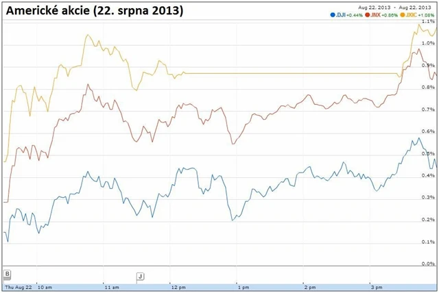 Americké akcie ve čtvrtek posilovaly poté, co na trh dorazila solidní makrodata. Investory potěšily předběžné výsledky indexu nákupních manažerů, pozitivní data z trhu práce i pokračující oživení realitního trhu. Největší události čtvrteční obchodní seance však paradoxně bylo přerušení obchodování se všemi tituly na burzovním trhu Nasdaq, který zastihly blíže nespecifikované problémy s kotacemi.