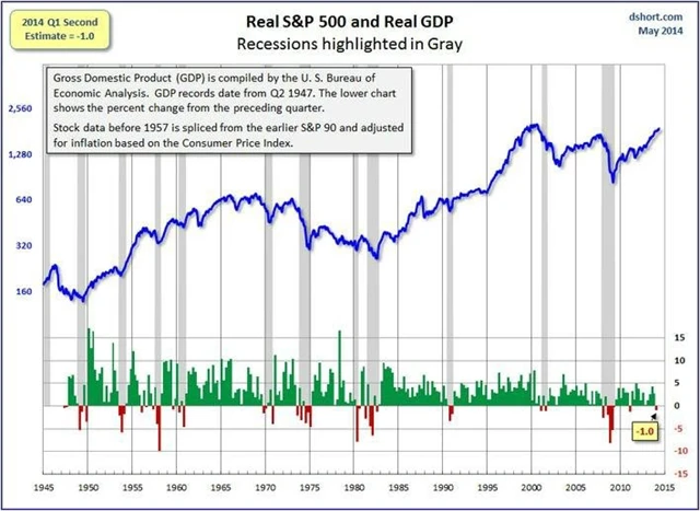 Americký HDP podle druhého zpřesněného odhadu v prvním čtvrtletí klesl poprvé za poslední tři roky. Na ekonomice se podepsala tvrdá zima, která pozastavila aktivitu ve stavebnictví. První rychlý odhad hlásil 0,1% růst, analytici však s revizí níže počítali. Revizi dolů způsobily především nižší investice. Podnikové investice do výstavby byly revidovány výrazně dolů na 7,5% pokles oproti původně očekávanému 0,2% růstu.