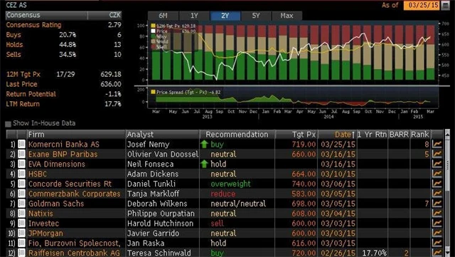 "Od vydání naší poslední analýzy akcie ČEZ stagnovaly a nyní se opět dostaly na úroveň naší cílové ceny. S očekávaným dividendovým výnosem dlouhodobě okolo 5,5 % a se zlepšeným očekáváním budoucích zisků jsou pro nás nyní akcie ČEZ atraktivní k nákupu. Naše revidované odhady jsou výrazně vyšší než aktuální tržní konsenzus, který podle našeho názoru zatím nezohledňuje nečekaně dobrý výhled ČEZ pro rok 2015 a úspěšné snižování nákladů. Postupný růst konsenzuálního odhadu by měl mít pozitivní dopad na cenu akcií ČEZ," napsala Komerční banka.