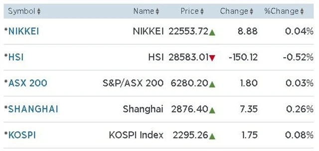 V Austrálii skončil index S&P/ASX 200 o 0,03 procenta výše než v pondělí, když nad nuloujej udržel především energetický sektor. Naopak hongkongský index Hang Seng poklesl o 0,5 procenta.