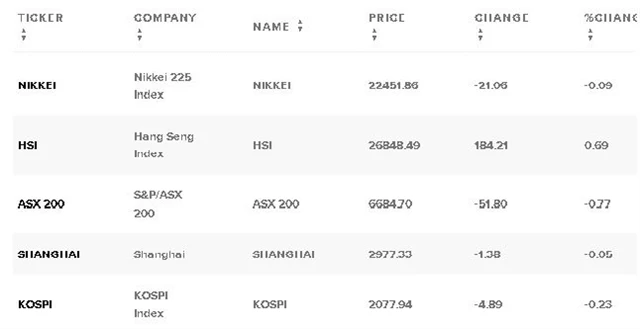Trhy pevninské Číny prožily nezajímavou seanci. Šanghajský kompozitní index klesl o 0,12 %, zatímco index šenčenské burzy uzavřel okolo nuly. Podobně na tom byly hlavní indexy v Japonsku, Jižní Koreji a Austrálii, které zakončily obchodování kolo nuly nebo s mírnými ztrátami.