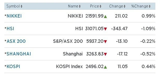 Hlavní index tokijské burzy Nikkei 225 stoupl o téměř celé procento; nejúspěšněji si vedly těžařský a ropný sektor. Také korejský index Kospi skočil v černých číslech, na sedmitýdenním maximu, když ztráty výrobního sektoru více než vynahradil zisk sektorů navázaných na ropu; také technologický gigant Samsung Electronics si připsal 1,41 procenta.