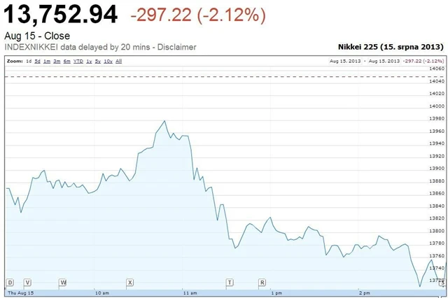 Čínský Shanghai Composite ztrácel přes 0,8 %, hongkongský Hang Seng index se pohyboval kolem nuly, japonský Nikkei odepsal 2,12 % a australský S&P/ASX 200 0,10 %.