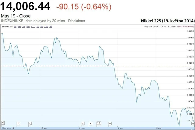 Japonský Nikkei odepsal 0,64 % a zakončil těsně nad 14 tisíci body, hongkongský Hang Seng ztrácel kolem 0,15 % a čínský Shanghai Composite odevzdal 1,05 %, čímž se ocitl na dvouměsíčním dnu. Australský S&P/ASX 200 klesl o 1,28 %, zatímco jihokorejský Kospi výprodejům odolal a uzavřel obchodování na nule se ziskem 0,08 %.