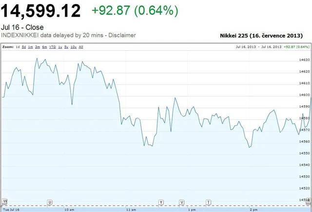 Shanghai Composite posiloval o 0,31 %, hongkongský Hang Seng o 0,27 % a japonský Nikkei připsal 0,64 %. Mírně vzrostl i australský S&P/ASX 200 (+0,10 %), odepsal naopak korejský Kospi o 0,47 %. Burzy v Indii oslabovaly o více než jedno procento.