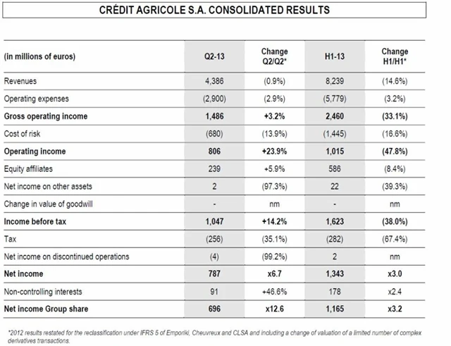 Čistý zisk francouzské banky Crédit Agricole ve druhém čtvrtletí vzrostl více než dvanáctinásobně a činil 696 milionů eur (očekávání 514 milionů eur). Jeden z největších francouzských finančních ústavů totiž dokončil odchod z Řecka, které mu v minulosti ukrajovalo část příjmů.