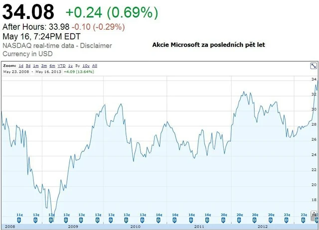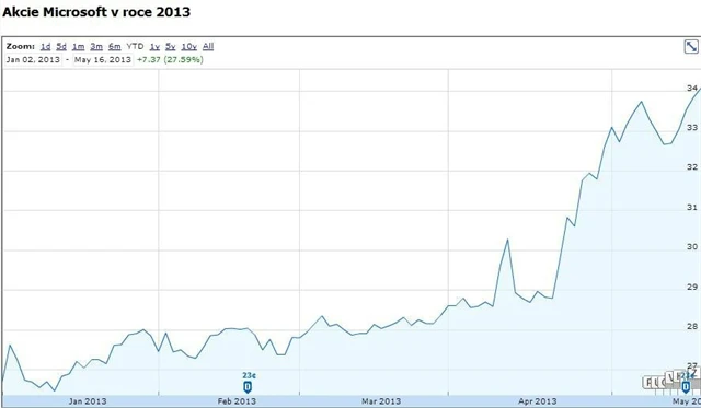 V minulém kvartálu společnost vykázala o 5 % vyšší provozní zisk a o 8 % vyšší tržby díky tomu, že její portfolio je velmi rozmanité a nezávisí plně jen na prodejích stolních počítačů. Microsoft také podpořila zpráva, že ValueAct plánuje koupit její akcie v hodnotě 2 miliard dolarů.