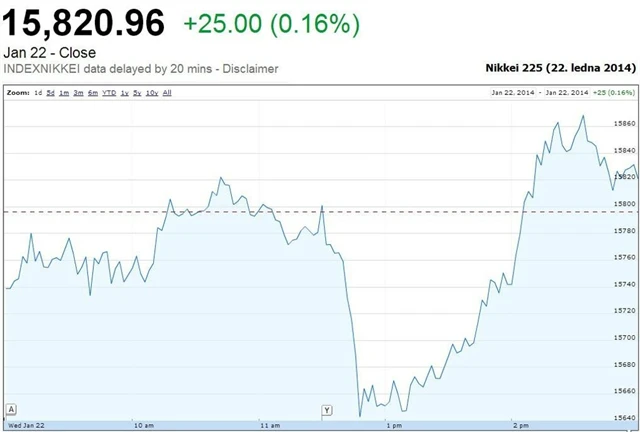 Japonský Nikkei smazal předchozí ztráty a zakončil mírně v plusu se ziskem 0,16 %, hongkongský Hang Seng vzrostl o 0,21 % a čínský Shanghai Composite připsal nejvíce za poslední dva měsíce (+2,16 %), když sazby na peněžních trzích dále klesaly. Čínská centrální banka v pondělí napumpovala na trhy 42 miliard dolarů, protože očekává zvýšenou poptávku po penězích kvůli oslavám Nového roku, a od té chvíle sazby klesají.